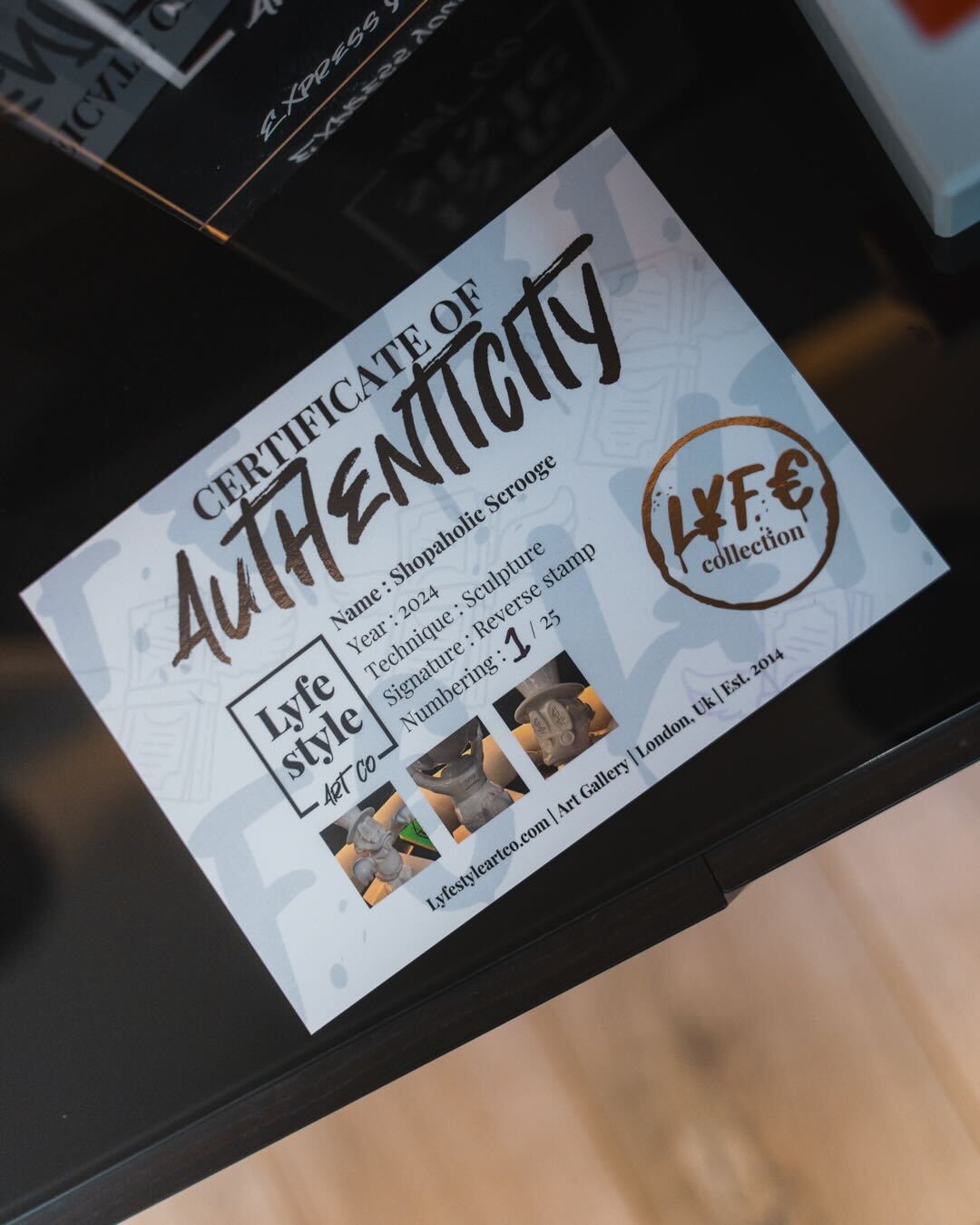 verifying it as a genuine limited-edition artwork. This certificate guarantees the originality, quality, and exclusivity of your piece, giving you full confidence in its value as both a collector’s item and an investment in contemporary art.